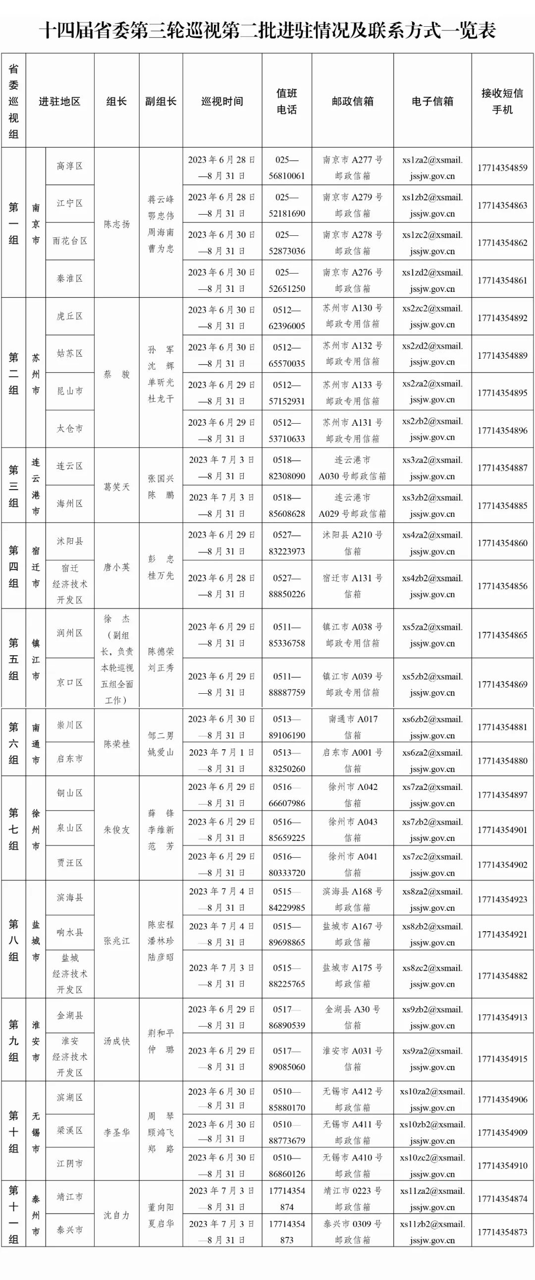省委巡视组将在被巡视地区现场工作两个月左右。巡视期间,设专门值班电话、接收短信手机、专门邮政信箱、电子信箱等,主要受理涉及被巡视地区领导班子及其成员、下一级主要负责人、相关重点岗位干部(含已离退休、已调离)的问题反映。巡视组在第二批被巡视地区受理信访时间截止到2023年8月28日,每天电话受理时间为8:00—18:00。其他不属于巡视受理范围的信访问题,将按规定转交被巡视地区或有关部门处理。
