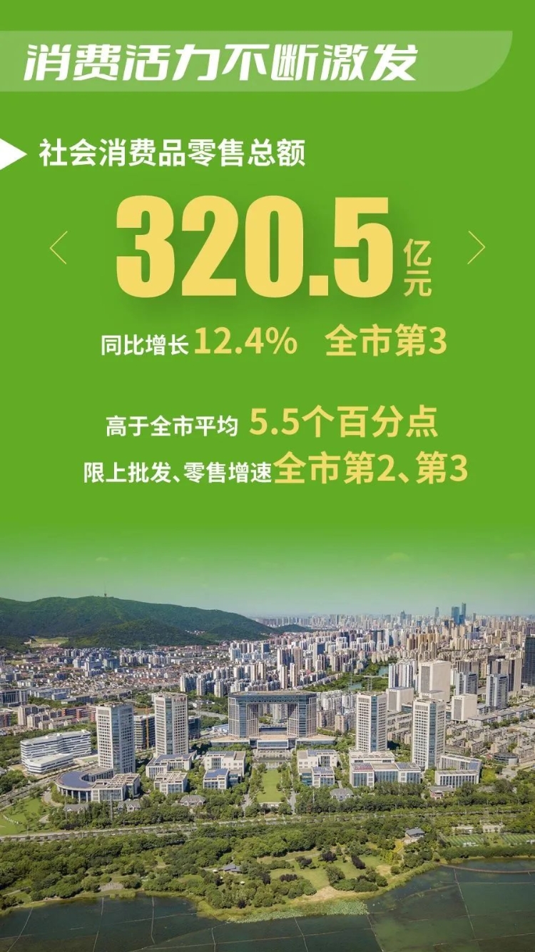 2023年,滨湖坚定不移完整准确全面贯彻新发展理念,知重负重、担责尽责,全面聚势聚力、奋勇争优争先,经济运行“稳”的态势持续巩固。市重点监测的12项主要经济指标中,6项指标增速位列全市前3、8项指标增速高于全市平均。